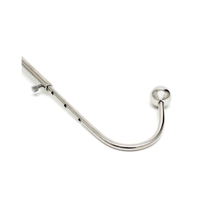 Geniet van super spannende en kinky bdsm spelletjes met deze Rimba bondage haak met halsband! Een bondage haak is een super kinky accessoire en is niet alleen spannend in gebruik, maar ziet er ook spannend uit! Deze bondage haak is gemaakt van sterk roestvrij staal en heeft aan de ene kant een halsband en aan de andere kant een bal. De bal kan zowel vaginaal als anaal ingebracht worden, terwijl de metalen staaf ervoor zorgt dat je maar in één positie kunt blijven staan of liggen. De staaf is in lengte verstelbaar zodat hij voor iedereen een goede pasvorm heeft en op precies de juiste plekken komt. Laat de meest ondeugende fantasieën werkelijkheid worden met deze Rimba bondage haak met halsband.