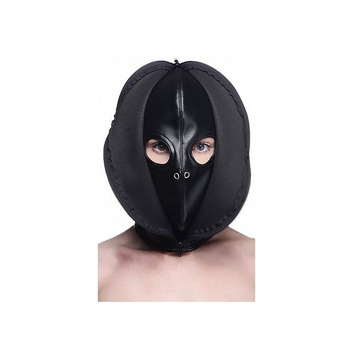 Met deze Bondage Masker Zip Front van XR Brands heb jij de controle over je sub. Hierdoor kun jij een kinky spelletje spelen. De masker heeft twee ooggaten en een paar ademhalingsgaten in de binnenkap, jij kiest om de voorkant dicht te ritsen om het zicht weg te nemen. Door de veters aan de achterkant kan de masker eenvoudig op maat worden gemaakt.