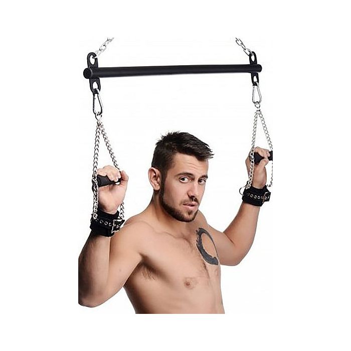 De Bondage Stang Levitate Suspension Bar van Master Series is speciaal gemaakt om op te hangen. Hierdoor heb jij de controle over je sub. Bevestig de stang aan het plafon en je kunt je sub ophangen. De handboeien en handgrepen worden apart verkocht.