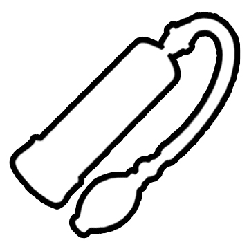 - Knijpbal: Je knijpt een bal om de lucht uit de cilinder te pompen.