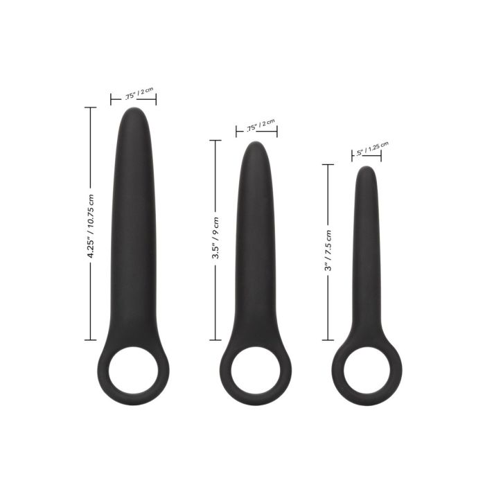 De Boundless Dilator Trio van CalExotics bevat 3 siliconen dilatoren met gemakkelijke vingerlus en multifunctioneel ontwerp. Het siliconen voelt erg comfortabel en zijn zacht in te brengen. De hypoallergene premium siliconen zijn lichaamsveilig, ongeparfumeerd en ftalaatvrij om je meest gevoelige plekken gelukkig en gezond te houden.