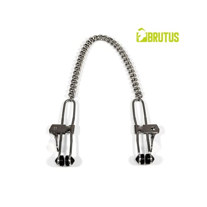 Deze grote, U-vormige klemmen zijn vervaardigd uit massief staal en bieden een ongeëvenaarde knijpkracht die direct inwerkt op de tepels. Met hun twee rubberen stootranden zorgen ze voor een stevige, constante druk zonder in te boeten op comfort. Ideaal voor diegenen die op zoek zijn naar een intense en gedurfde stimulatie, deze klemmen zijn niet verstelbaar, wat betekent dat je meteen kunt genieten van de krachtige sensatie die ze bieden.