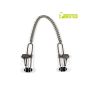 De klemmen zijn verbonden door een robuuste metalen ketting, die niet alleen extra trekkracht toevoegt, maar ook een visueel statement maakt in je BDSM-spel. Trek aan de ketting en ervaar een intensere sensatie die een extra dimensie toevoegt aan je spel. Of je nu een doorgewinterde BDSM-liefhebber bent of net begint met het verkennen van bondage-scenario's, deze tepels klemmen zijn ontworpen voor spelers die houden van krachtige stimulatie.
