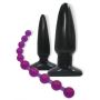 Deze set bevat twee anale plugs in verschillende maten - een grote en een middelgrote - perfect voor zowel beginners als ervaren gebruikers. De elegante zwarte kleur voegt een vleugje luxe toe aan je speeltijd. Daarnaast krijg je een paarse anale beads die zorgt voor een unieke en spannende ervaring. Of je nu alleen speelt of samen met een partner, deze set biedt eindeloos plezier en nieuwe mogelijkheden om je zintuigen te prikkelen.