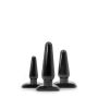 Ga heerlijke anaal avonturen beleven door Buttplug Anal Adventures Basic Kit - Zwart! De prachtige buttplug kit van het merk Blush heeft een taps toelopende vorm. Hierdoor verloopt het inbrengen met behulp van een glijmiddel op waterbasis altijd aangenaam. Deze zwarte buttplug is met zijn klassieke model dan ook perfect voor beginners! De butplug anal kit is gemaakt van buigzaam PVC materiaal. Daarom geniet je in elke positie van zinderende anale sensaties. Waardoor je een diepgevoelde en nog intenser orgasme ervaart. Deze anaal sextoy is volkomen bodysafe. Door de vlakke basis geniet jij non-stop van anale seks. Deze buttplug kit heeft 3 verschillende maten. De buttplugs hebben een diameter van 2,6 cm, 3,5 cm en 4,2 cm. Zo zit er altijd een geschikte maat buttplug voor jou bij om optimaal te genieten van anale stimulatie. Na gebruik reinig de je de buttplug eenvoudig met water en een milde zeep of een toycleaner