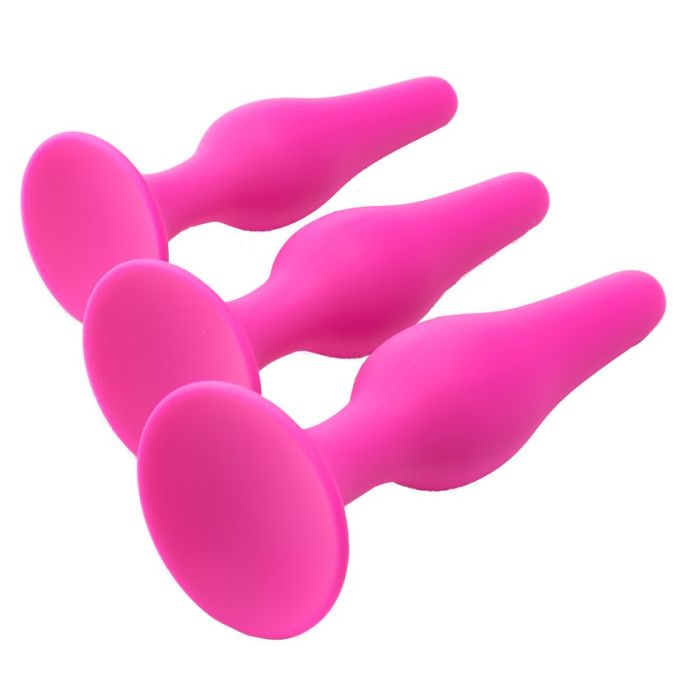 Deze buttplug set is speciaal gemaakt voor beginners op het gebied van anale seks. De buttplug set bestaat uit drie buttplug die elk een eigen formaat heeft. Begin met de kleinste en bouw het rustig op tot je de grootste plug kunt inbrengen. De plugs zijn gemaakt van heerlijk zacht en flexibel siliconen en zijn voorzien van een handige zuignap voor handsfree genot. Gebruik een glijmiddel op waterbasis om de buttplugs soepel in te brengen. Na gebruik kan je de plugs schoonmaken met water en een milde zeep of één van onze speciale toycleaners.