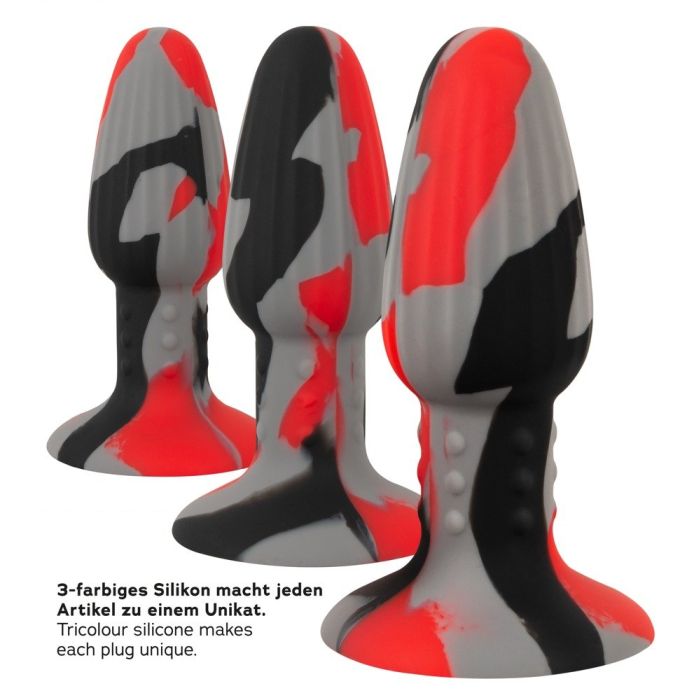 De Buttplug Tricolour van Anos heeft een sterke zuignap en breng kleur in het anale spel! Individueel gegoten in 3 kleuren, ziet elke anaalplug er anders uit met zijn kleurkorrel en is dus visueel uniek! De stijlvolle plug heeft een klassieke conische vorm met een smal toelopend uiteinde voor gemakkelijk inbrengen. Het heeft ook uitgesproken groeven en noppen op de conus voor intense stimulatie en een goede grip. Door de brede zuigvoet kun jij veilig en comfortabel genieten. Tricolour is gemaakt van siliconen met een zacht aanvoelende textuur, glijdt de zijdeachtige plug bijna vanzelf en past zich perfect aan het lichaam en de bewegingen aan.