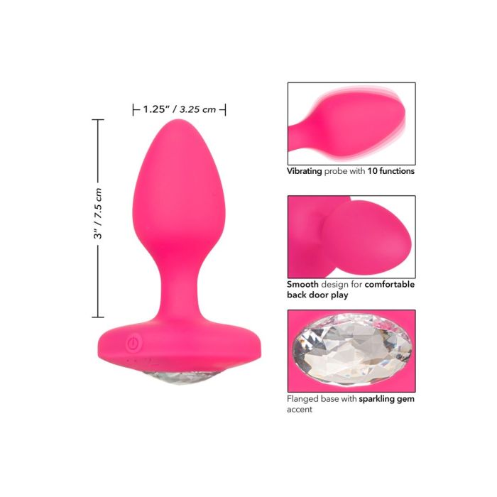 De Buttplug Vibrating Probe Small van CalExotics is gemaakt van flexibele siliconen. Het edelsteenaccent voegt een vleugje sprankeling toe aan elk achterdeuravontuur. Dankzij de taps toelopende vorm is plug gemakkelijk in te brengen en door de brede basis kun jij comfortabel genieten. De 10 vibratiestanden zijn eenvoudig te bedienen op het speeltje zelf. Laad de buttplug gemakkelijk op in 2 uur met de bijgeleverde USB oplaadkabel.