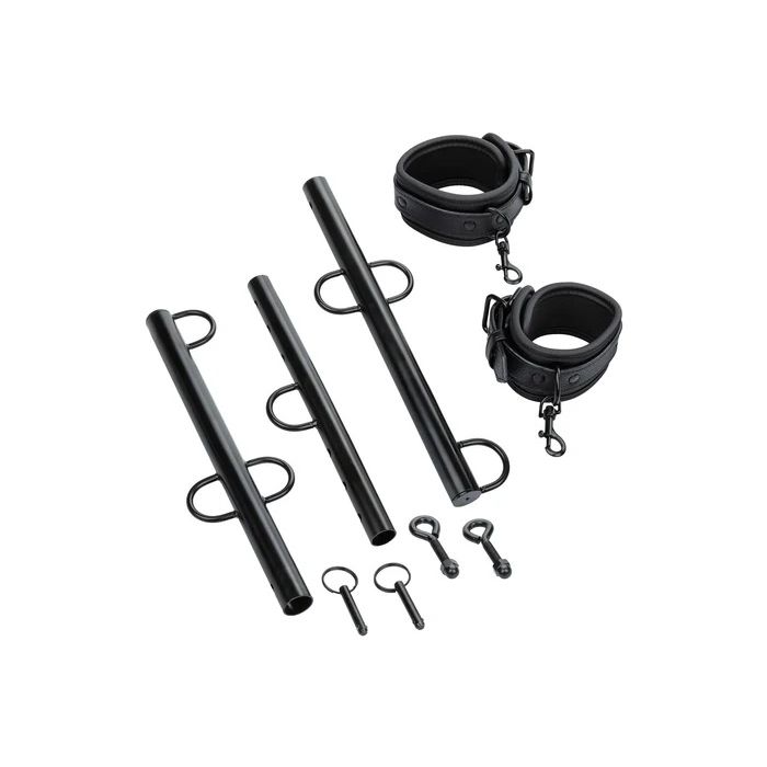 De CalExotics Spreader Bar met Handboeien is ontworpen om je fantasieën naar een hoger niveau te tillen, met een bereik van 65.5 cm tot 77 cm, waardoor je benen op een opwindende manier uit elkaar worden gehouden. De bijgeleverde, afneembare enkelboeien zijn voorzien van veilige en comfortabele sluitingen, zodat je je volledig kunt overgeven aan het moment zonder je zorgen te maken. Dankzij de draaikoppelingen en D-ringen kun je eindeloos variëren in posities, wat zorgt voor een dynamische en opwindende ervaring. De sterke en textuurvolle bar is niet alleen duurzaam, maar kan ook eenvoudig worden gedemonteerd voor discreet opbergen of reizen. Perfect voor zowel beginners als ervaren gebruikers die hun spel willen uitbreiden!