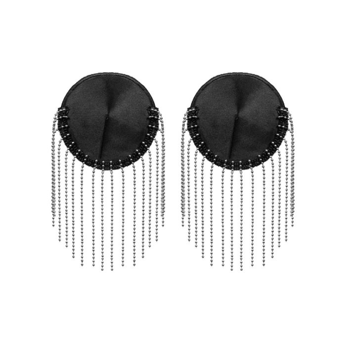 Deze zwarte tepelstickers Milladis van Obsessive is perfect voor vrouwen die op zoek zijn naar dat beetje extra glamour en verleiding. Gemaakt van elegant en glinsterend satijn, voegt deze tepelstickers een vleugje luxe toe aan elke outfit. De twierige kettingrandjes geven een speels en sensueel effect, waardoor je er extra verleidelijk uitziet.