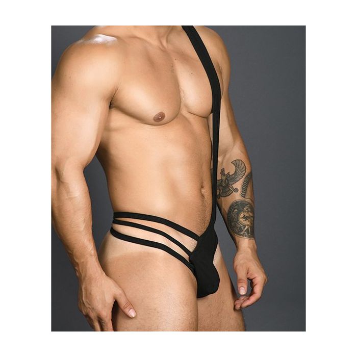 Het Entice Singlet is gemaakt van zachte zwarte stof met een goede rekbaarheid voor een perfecte pasvorm. Het singlet heeft een asymmetrisch model met speelse bandjes over de heup en een string model aan de achterkant. De Almost Naked buidel is anatomisch correct gevormd en voelt aan als een tweede huid voor een unieke draag ervaring.
