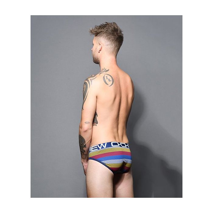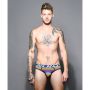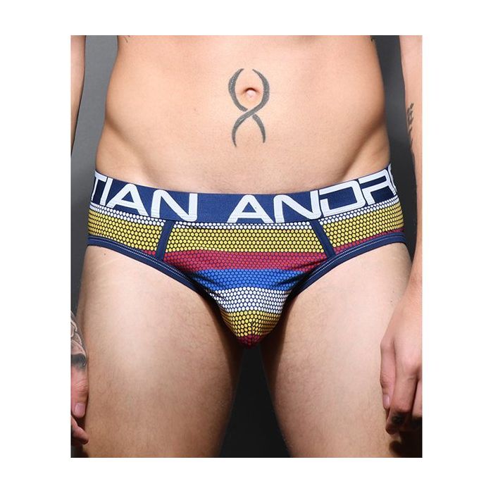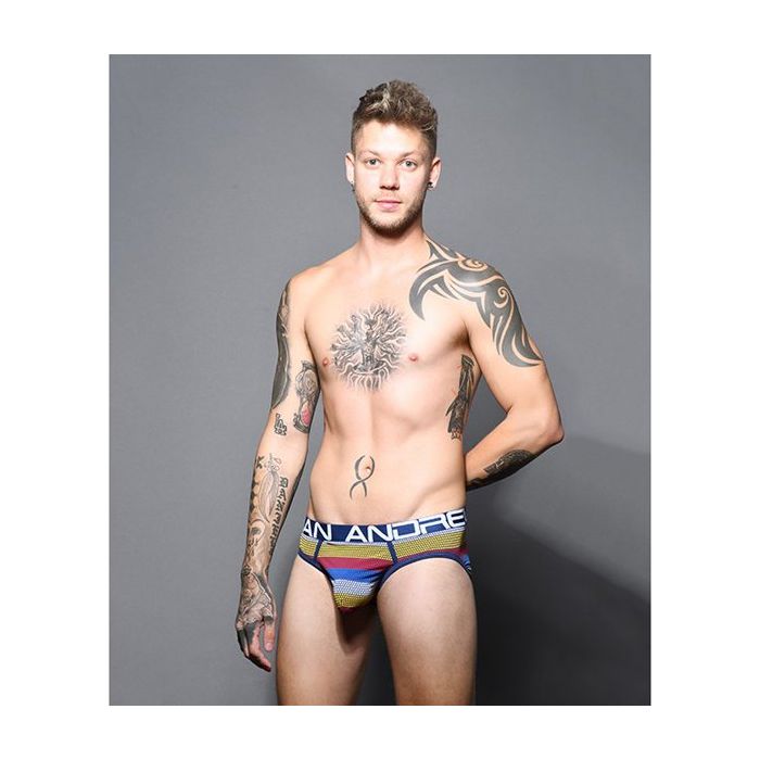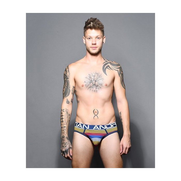Zit jij op dezelfde frequency als jouw partner? Dan zal jouw partner blij verrast zijn met de Andrew Christian Frequency Stripe Slip. Deze limited edition design slip heeft een kleurrijke pointillisme print. De slip heeft een donkerblauwe signature slimming waistband met Andrew Christian logo. De zachte zomen zijn net als de lage tailleband donkerblauw van kleur.