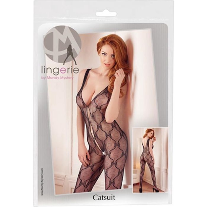 Deze verleidelijke zwarte catsuit van Mandy Mystery is perfect voor vrouwen die hun sensuele kant willen laten zien. Het opvallende patroon zorgt voor een sexy kanten uitstraling die zeker de aandacht zal trekken. Het rekbaar materiaal zorgt ervoor dat de catsuit comfortabel zit en zich perfect aanpast aan het lichaam van elke vrouw. De open voorkant en het open kruis voegen een uitdagend element toe aan deze catsuit, waardoor het perfect is voor intieme momenten. Of je nu je partner wilt verrassen of gewoon je zelfvertrouwen een boost wilt geven, deze catsuit is een must-have in de slaapkamer. Laat je verleidelijke kant naar boven komen en voel je zelfverzekerd in deze prachtige catsuit van Mandy Mystery.