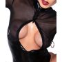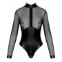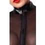 Deze prachtige zwarte body met lange mouwen van Noir is een absolute must-have voor elke vrouw die op zoek is naar een combinatie van elegantie en sensualiteit. De body is gemaakt van een verfijnde mix van transparant, fijn powernet aan de bovenkant en een zachte matte look aan de onderkant. Dit zorgt niet alleen voor een spannend contrast, maar ook voor een comfortabele pasvorm die perfect aansluit op het lichaam. De body heeft een opstaande kraag en een ritssluiting die vanaf de kraag doorloopt tot over de billen, waardoor je gemakkelijk in en uit de body kunt stappen. De twee grote ringen aan de voorkant op borsthoogte zijn echte eyecatchers en simuleren spannende tepelpiercings. Dit geeft de body een extra speels en uitdagend tintje. Kortom, deze body van Noir is ideaal voor een avond vol passie en verleiding!