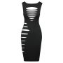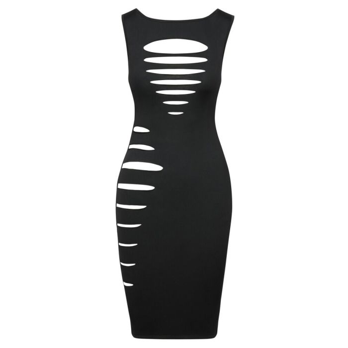 Deze schedejurk met veel sexappeal is een knielange, nauwsluitende en mouwloze jurk van Cottelli PARTY. De jurk is gemaakt van delicaat transparant zwart materiaal, waardoor het een verleidelijke uitstraling heeft. Aan de voorkant en aan één kant van de jurk zijn er verfijnde uitsparingen aangebracht, die zorgen voor spannende inzichten en een speels effect. De jurk is rondom elastisch en zacht, waardoor het een hoog draagcomfort biedt. Het materiaal bestaat voor 90% uit polyamide en voor 10% uit elastaan, wat zorgt voor een goede pasvorm en flexibiliteit. Deze schedejurk is perfect voor speciale gelegenheden waarbij je je sexy en zelfverzekerd wilt voelen. Combineer het met mooie hakken en accessoires om je look compleet te maken.