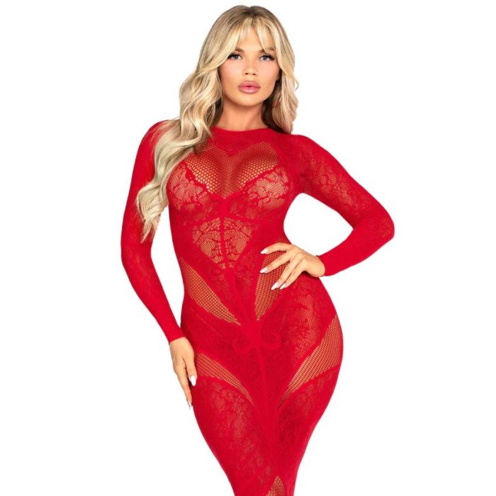 Leg Avenue Elegante Kanten Bodycon Jurk - Rood