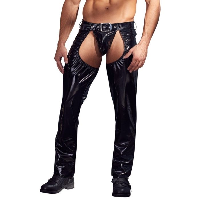 Kom goed voor de dag met deze geweldige Chaps met String. Hij is gemaakt van rekbaar glanzend lak materiaal zodat hij een goeie pasvorm heeft. Aan de voorkant is de chap te sluiten met een brede riem voor een super stoer effect. Laat lekker je billen zien met deze geile broek en steel de show. Omdat hij zo rekbaar is zal die elke beweging comfortabel met je mee veren. De string is optioneel en wanneer jij een echte lefgozer bent draag jij hem lekker niet!