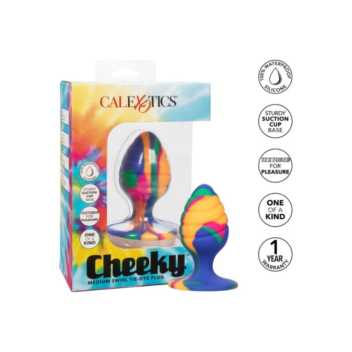 Bevrijd je wilde kant en geniet van verreikend plezier met de Cheeky Medium Swirl Plug - Medium. Deze gedurfde anale plug heeft een trendy tie-dye ontwerp waardoor de plug een speelse uitstraling krijgt. Dankzij de afgeronde taps toelopende vorm zal deze plug jou veel plezier bieden. Met de handige zuignapbasis kun je extra brutaal worden door hem op een vlak oppervlak te monteren voor handsfree stimulatie. De flexibele plug is gemaakt van lichaamsveilige siliconen voor extra comfort.