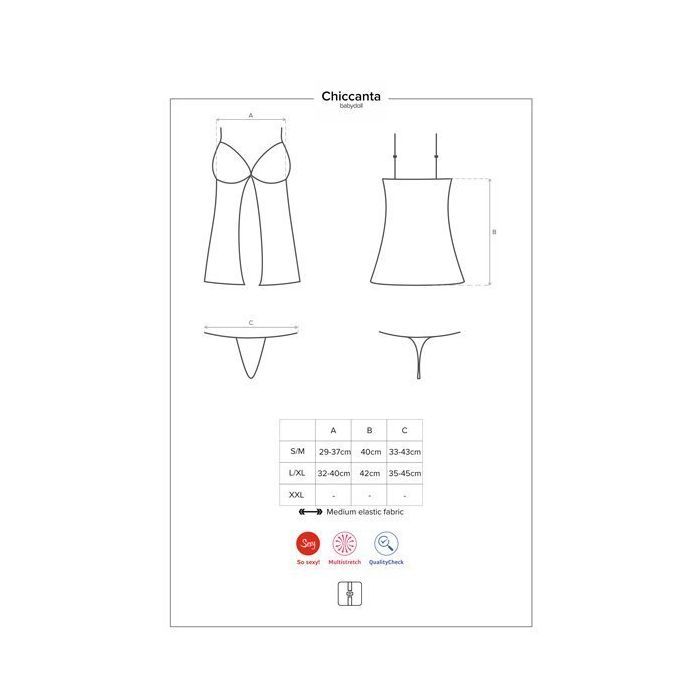 Zoek jij naar iets speciaals? Dan is de Chiccante Babydoll & String - Zwart zeker iets voor jou! Deze babydoll en string set van Obsessive heeft een uniek design en is gemaakt van de beste materialen.
