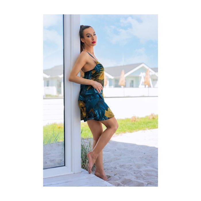 Jij bent een tropische traktatie in de Clairee Chemise en String van Livco Corsetti! Deze tweedelige set komt uit de Aquareel Collection. De set is gemaakt van satijn geweven stof dat heerlijk glad aanvoelt. De stof heeft een tropische print van blauwe en gele bladeren.