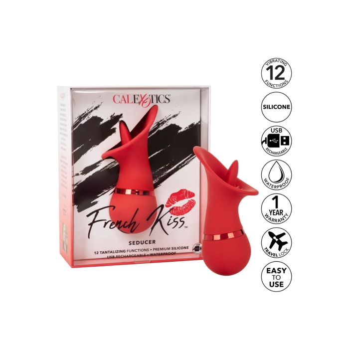 De French Kiss Seducer van CalExotics is een geweldige, compacte clitoris stimulator voor mee op reis. De stimulator heeft 12 sensuele functies van fladderende vibraties door de tongachtige punt. Door de combinatie van het zachte siliconen materiaal en de vibraties zal jij intens genieten.