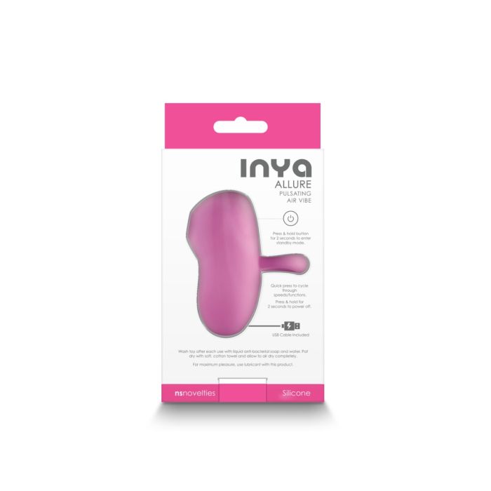 Deze discrete Clitoris Stimulator INYA Allure van NS Novelties is gemaakt van siliconen. De stimulator past perfect in de palm van je hand en door de vingerring is hij gemakkelijk te gebruiken. Inya Allure is volledig oplaadbaar en spatwaterdicht. Je kunt de 10 vibratiestanden bedienen door de pushputton op het speeltje zelf.
