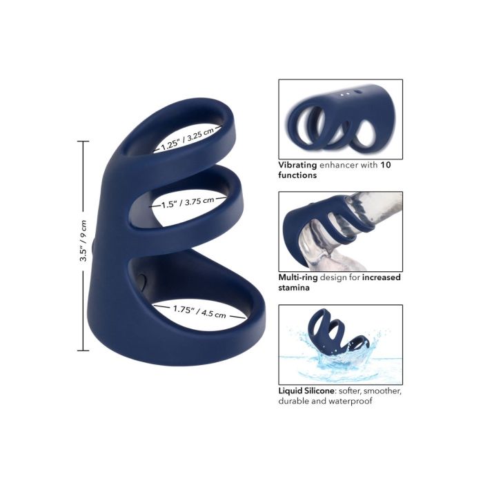 De Cock Cage Rechargeable Triple komt uit de Viceroy serie van het merk CalExotics. De meerdere ringen geven meer steuning om prestaties te verbeteren. De rekbare, flexibele en stevige cockring is gemaakt om het uithoudingsvermogen te vergroten, de gevoeligheid te verbeteren en superieure erectieondersteuning te bieden. Triple is gemaakt van premium vloeibare siliconen. Het materiaal is zacht, glad en duurzaam. De 10 vibratiestanden zijn gemakkelijk te bedienen op het speeltje zelf. Laad de cockring op in 2.5 uur met de bijgeleverde USB oplaadkabel.
