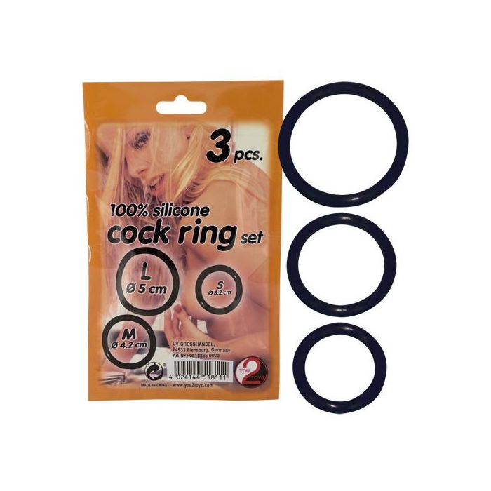 Deze trio cockringen set van You2Toys bevat 3 zwarte cockringen in verschillende maten: S, M en L. De ringen hebben een diameter van 3,2 cm, 4,2 cm en 5 cm. Je kunt de cockringen op verschillende manieren gebruiken. Gebruik 1 ring per keer, 3 tegelijk of draag er één om je schacht en één om je balzak voor een heerlijke strakke sensatie. Deze super rekbare en sterke penisringen houden de penis hard en stevig. Ook houden ze de bloedsomloop tegen waardoor je langer van je erectie kunt genieten en je orgasme nog intenser en explosiever is! Een hoop genot gegarandeerd! Deze cockringen trio set is ook leuk als cadeautje voor je partner om vervolgens natuurlijk samen het plezier ervan te ontdekken.