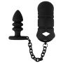 De penis wordt ingebracht in de flexibele, comfortabele siliconen peniskooi en de rekbare ring wordt over de testikels getrokken, zodat alles slipvrij zit. De anaalplug wordt dan in de anus ingebracht. De verbindingsketting wrijft stimulerend over het perineum en zorgt voor een geweldig gevoel. Daarnaast zorgt de verbindingsketting voor veiligheid, zodat de plug er niet in glipt. Het siliconen materiaal voelt lekker en comfortabel aan.