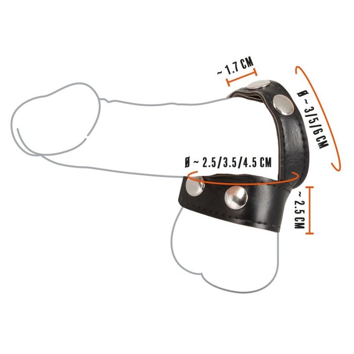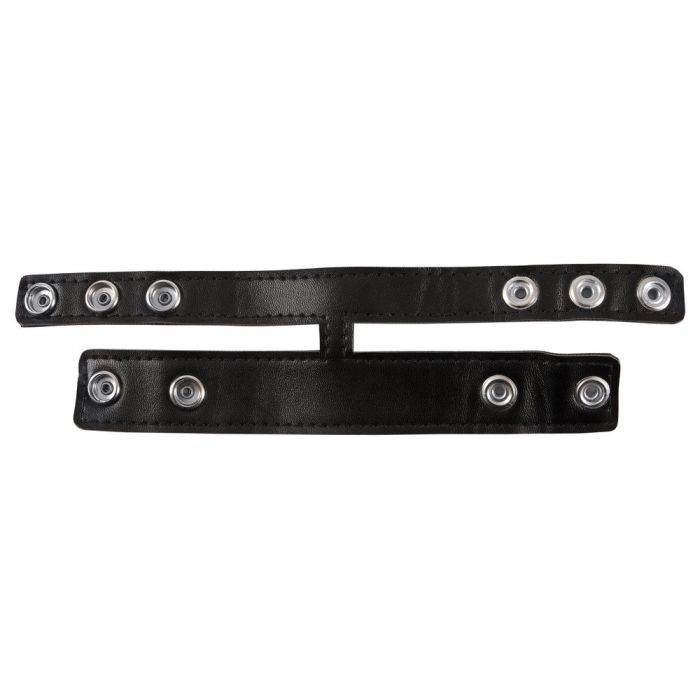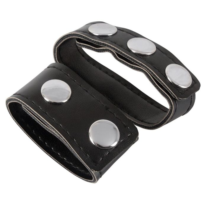 Voor het gemakkelijk rekken van je balzak en voor meer uithoudingsvermogen! Deze gecombineerde cockring en ballstretcher is gemaakt van kunstleer voor een mannelijke look. De toy is snel om en af te doen met drukknopen en comfortabel verstelbaar voor een perfecte pasvorm.