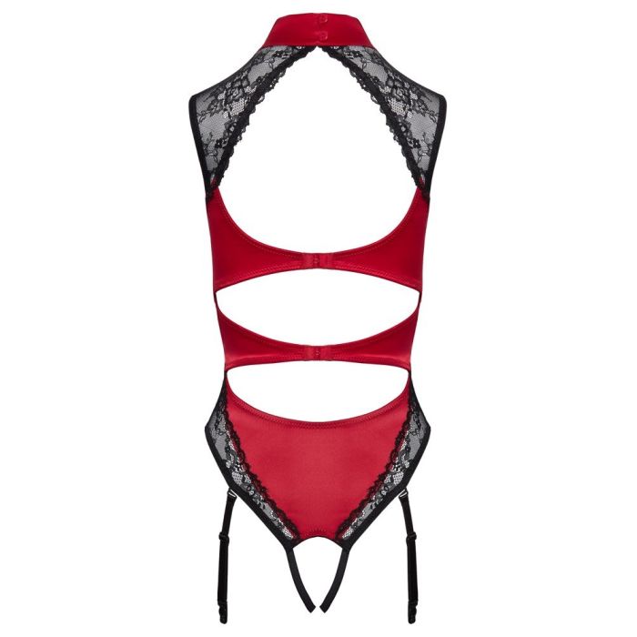 Cottelli Elegante Jarretelbodysuit - Rood/Zwart