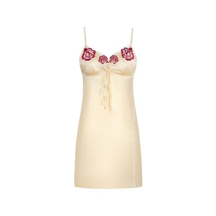 In de Csenge Chemise ben jij het zonnetje in huis! Deze chemise komt uit de Sunglow lijn van Livco Corsetti. Het elegante jurkje is gemaakt van gladde stof met een satijn geweven structuur. Dit geeft een glanzend effect. De gele kleur zorgt voor een zonnig uiterlijk. Over de cups is het nachtjurkje versierd met sierlijk borduursels en geschulpte randjes.