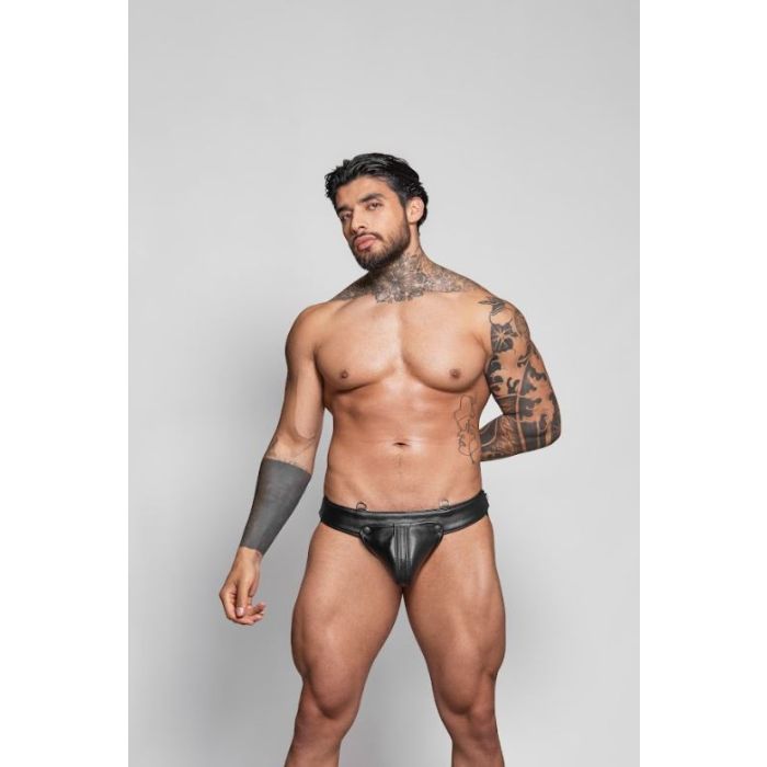 De Dale Mas Biker Eco Jock - Zwart is de perfecte mix van stijl en comfort, ontworpen voor de moderne man die zijn zelfvertrouwen wil uitstralen. Deze sexy jockstrap accentueert je mannelijke heupen en zorgt ervoor dat je er niet alleen stoer uitziet, maar je ook zo voelt. Of je nu naar een bruisend feestje gaat of gewoon lekker thuis wilt relaxen op een zondagmiddag, deze jock is ideaal. De zwarte kleur geeft een edgy uitstraling die moeiteloos te combineren is met verschillende outfits, waardoor je altijd goed voor de dag komt. Met de Dale Mas Biker Eco Jock ben je niet alleen klaar om je rebelse kant te tonen, maar ook om indruk te maken op iedereen om je heen.