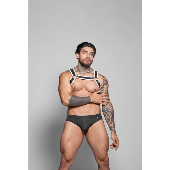Dit harnas is de perfecte aanvulling voor elke man die zijn gespierde figuur wil accentueren en een krachtige uitstraling wil hebben. De Dale Mas Biker Harnas in zwart en wit is ontworpen om jouw bovenlichaam een extra brede en gespierde look te geven. De combinatie van de stoere kleuren zorgt ervoor dat je niet alleen sexy, maar ook mysterieus overkomt. Of je nu naar een feestje gaat of gewoon een avondje uit, dit harnas zal zeker de aandacht trekken en je zelfvertrouwen een boost geven.
