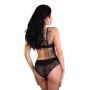 De voorgevormde beugel cups zijn overtrokken met fantastisch mooi, tweekleurig kant. De geschulpte randjes van het kant steken zowel aan de boven- als aan de onderkant van de cups over. Het kant loopt door in de achterkant tot aan de 3 x 2 haaksluiting in de rug. De schouderbandjes zijn te verstellen.