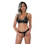 Ook de string is afgewerkt met geschulpte randen. De string heeft een open kruis die een duidelijke boodschap afgeeft: Neem me, nu!