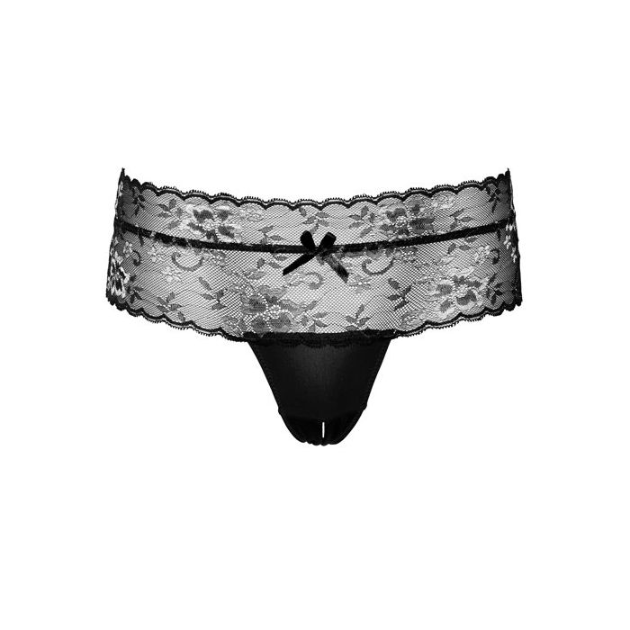 Daring Lacy Hoge Open Kruis String - Zwart