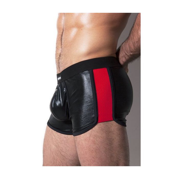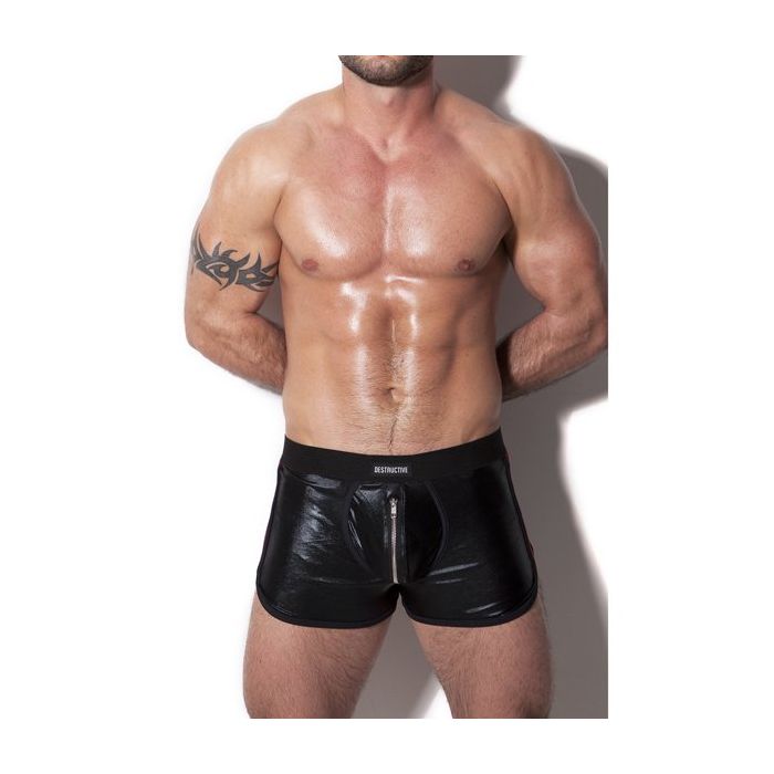 De Black and Red Zipper Short van Destructive is een sexy short gemaakt van glanzend, elastische stof met inzetten van rood micro mesh in de zijkanten. De rekbare tailleband zorgt ervoor dat hij comfortabel zit.