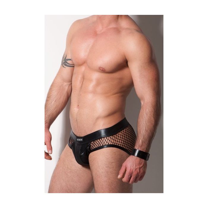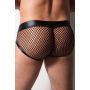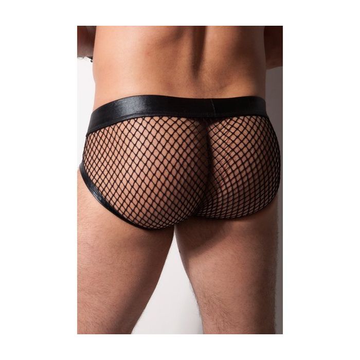 De slip heeft een ergonomische kunstleren buidel met een strook nep slangenleer over de voorkant. Rondom is de slip gemaakt van mesh met een grof gaten structuur. Hierin komt jouw lekkere kont goed tot zijn recht.