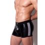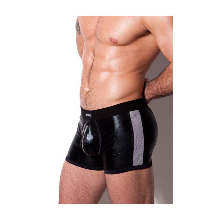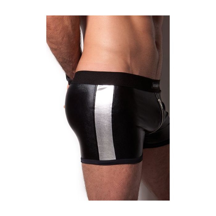 De Destructive Metal Mesh Zipper Short is een uitdagende short met een elastische tailleband. De short is gemaakt van glanzend zwart rekbare stof en heeft de buidel een ergonomisch design. In de buidel is een rits gezet en aan de zijkanten is de short afgewerkt met metal mesh.