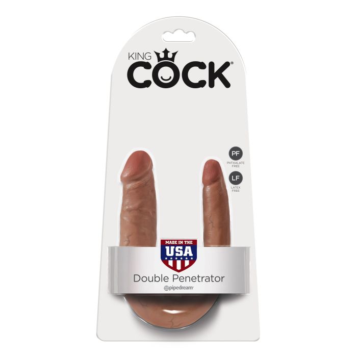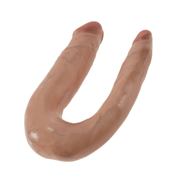 Dubbel genot met deze U-vorm realistische dildo van King Cock. Deze huidskleurige dildo is speciaal gevormd en heeft twee eikels. Je kunt hem op verschillende manieren gebruiken. Ga je voor een spannend solospel en gebruik de dildo vaginaal en anaal of kies voor een erotisch samenspel met je partner? Vergeet hem na gebruik niet hygiënisch schoon te maken met een toycleaner.