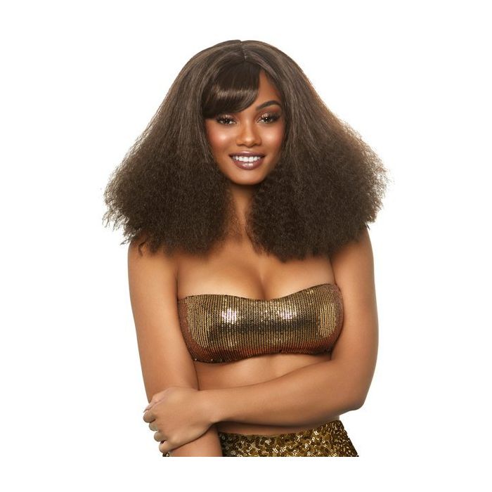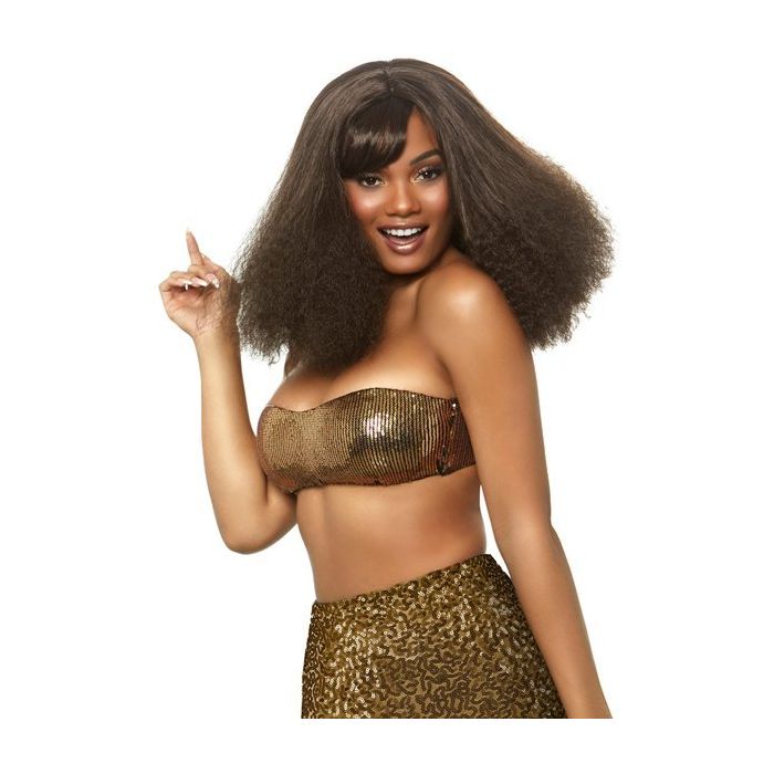 Aah aah aah aah stayin' alive, stayin' alive! Met je voetjes van de dansvloer als een echte disco diva met de Diva Disco Pruik - Brunette. Deze glanzende pruik van Leg Avenue is perfect voor een foute avond of een gekostumeerd back to the seventees feest. De pruik heeft een pony met een sweep to the side en lange wafelkrullen.