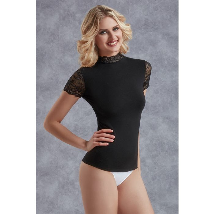 Dit t-shirt van het merk Doreanse is een uitstekend kledingstuk om als bovenkleding te dragen. Het t-shirt heeft een nauwsluitende pasvorm waardoor je vrouwelijke rondingen perfect uitkomen. Tevens is het t-shirt prachtig afgewerkt met kanten delen. Combineer dit fraaie t-shirt met een sexy rokje of stoere jeans. Combineren is eindeloos met dit sexy en stijlvolle t-shirt van Doreanse! Leverbaar in de maten: S t/m XXL.