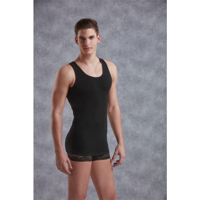 De Doreanse Tanktop met kant - Zwart is een schitterende tanktop met een verleidelijk tintje. De voorkant is effen maar als jij je omdraait is de top gemaakt van schitterend kant in bloemenpatroon. De rekbare stof zit comfortabel om het lichaam en heet een perfecte pasvorm. Het hemd is verkrijgbaar in verschillende maten. Ga voor verleiding en comfort met de Doreanse Tanktop met Kant - Zwart.