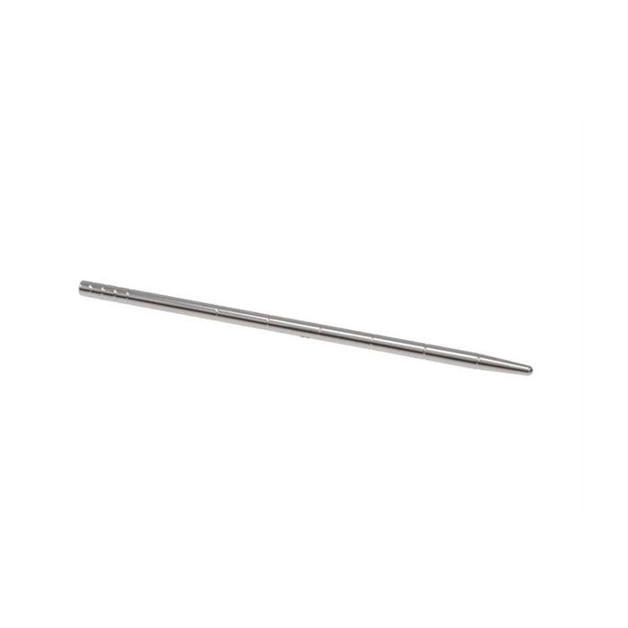 De E-stim Ultrasound Dipstick 6 mm is zeer geschikt voor BDSM gevorderden. Dit kinky speeltje ziet er op het ook misschien onschuldig uit, maar zoekt de grenzen op van pijn en genot. Stop de RVS dipstick in je urinebuis voor een sensationeel rekkend gevoel en gebruik hem voor electrosex. De E-stim Ultrasound Dipstick 6 mm dilator is gemaakt van solide RVS, is 17,5 cm lang en heeft en diameter van 0,40 cm. De licht taps toelopende vorm maakt inbrengen gemakkelijker terwijl je je plasbuis langzaam oprekt. De groeven over de gehele lengte van de dipstick zorgen voor extra stimulatie, terwijl de groeven aan de top fungeren als extra grip voor met glijmiddel bedekte vingers.