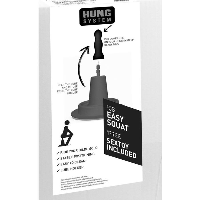 Dit apparaat zal ervoor zorgen dat elke toy uit het Hung System collectie verandert in jouw eigen stabiele seks stoel met jouw favoriete toy er bovenop geklikt. De naam zegt het al, ga in een easy squat en geniet solo van je favoriete hung system toy. Om het je makkelijk te maken is er bij de Easy Squat al 1 van onze favoriete toys bijgevoegd zodat jij direct aan de slag kan gaan. Onze enige echte winky die met een golvende beweging bij jou naar binnen zal glijden. Natuurlijk is dit uit te breiden met andere dildo's en buttplugs uit de collectie voor eindeloze variatie. Door zijn enorme diameter zal de Easy Squat perfect op zijn plek blijven staan hoe hard jij ook maar tekeer gaat.