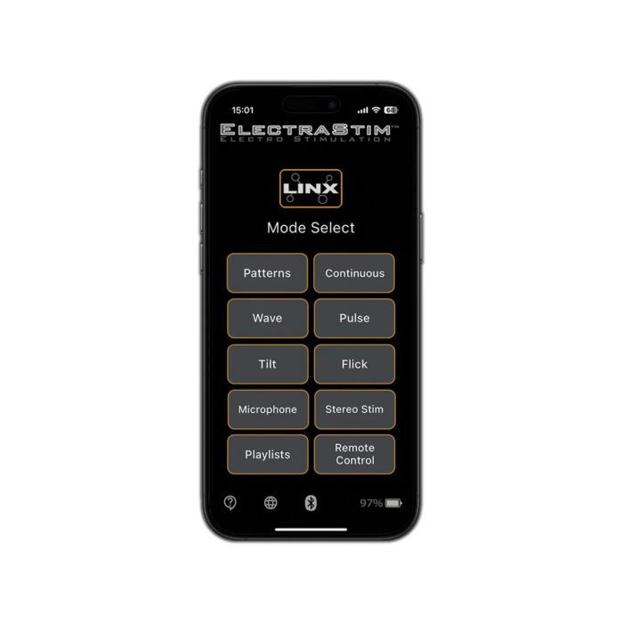 Voor degenen die nog verder willen gaan, biedt de gratis ElectraStim Linx App een nieuwe dimensie van interactie en personalisatie. Met de app kun je gedetailleerde controle uitoefenen over intensiteit, frequentie, pulsbreedte en kanaalgedrag, waardoor je de stimulatie eenvoudig kunt afstemmen op jouw voorkeuren. Met 10 verschillende speelmodi kun je een breed scala aan controle stijlen en stimulatiedynamiek verkennen, en moeiteloos schakelen tussen modi om aan je stemming of speelstijl te voldoen. De mogelijkheid om op afstand te spelen maakt het delen van electroplay nog spannender, of je nu op afstand bent, onderweg of in een virtuele machtsuitwisseling.