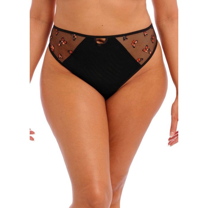 Maak je avond nog leuker met het dragen van de Elomi Sachi String uitgevoerd in de kleur zwart met een schattig vlinder design. Deze zwarte string valt wat hoger op de heupen, waardoor een eventueel buikje verbergt wordt en je optisch langer zult lijken. Daarnaast heeft deze string een super sexy achterkant die je billen nauwelijks bedekt waardoor je lover kan genieten van een heerlijk uitzicht. De voorkant is deels bedekt met doorschijnende tule met een vlinderprint. Combineer deze sexy string met de bijpassende bh voor een complete sexy set en je bent klaar voor een spannende avond samen met je lover.