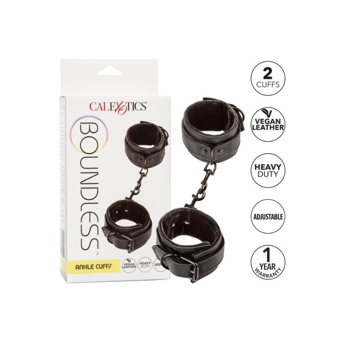 Laat je vastbinden met deze stevige enkelboeien van Boundless by Calexotix. Ze worden dubbel gesloten, met een gesp en extra met klittenband. Doordat de enkelboeien verstelbaar zijn passen ze altijd. De voering is heerlijk zacht voor een comfortabel gevoel. Extra beenruimte nodig? De volledig afneembare sluitingen kunnen worden verwijderd en bevestigd aan de ketting of ringen naar keuze