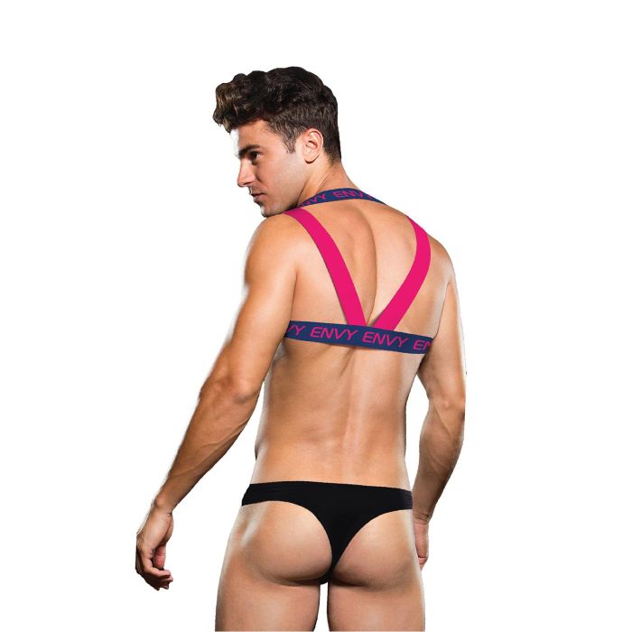 Ben je klaar om je look naar een hoger niveau te tillen? Envy Menswear, de beste ontwerper op het gebied van herenondergoedmode, staat klaar voor de uitdaging! De opvallende, strakke borstharnas is ontworpen in een oogverblindende blauwe en roze kleur. Deze borstharnas is perfect voor mannen die durven op te vallen. Het ontwerp is uniek en trekt zeker de aandacht. De combinatie van de opvallende blauwe en roze kleuren zorgt ervoor dat je er stijlvol en trendy uitziet. Het harnas is gemaakt van hoogwaardige materialen en is comfortabel om te dragen. Het is verstelbaar, zodat je het kunt aanpassen aan je lichaamsvorm en maat. Of je het nu draagt onder je kleding voor een extra boost van zelfvertrouwen, of als een statement accessoire bij een speciale gelegenheid, deze borstharnas zal zeker indruk maken.